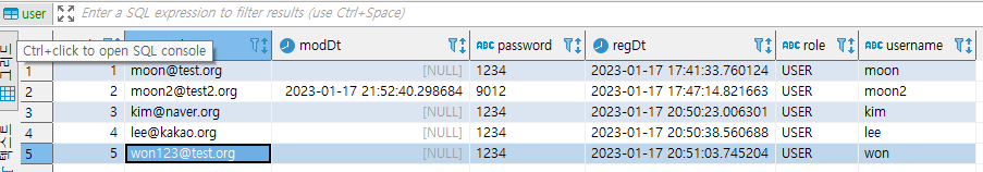 정상적으로 수정된 값이 들어갔습니다. 그리고 전에 작성해 놓은 수정일(modDt)의 @LastModifiedDate를 통해 UPDATE 작업한 시간에 맞게 값이 새로 들어온 것을 확인 하실 수 있습니다.